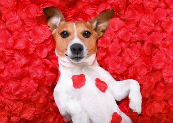 変容の炎ならぬ、変容の花びらに包まれた、至福のワンコ(笑) |